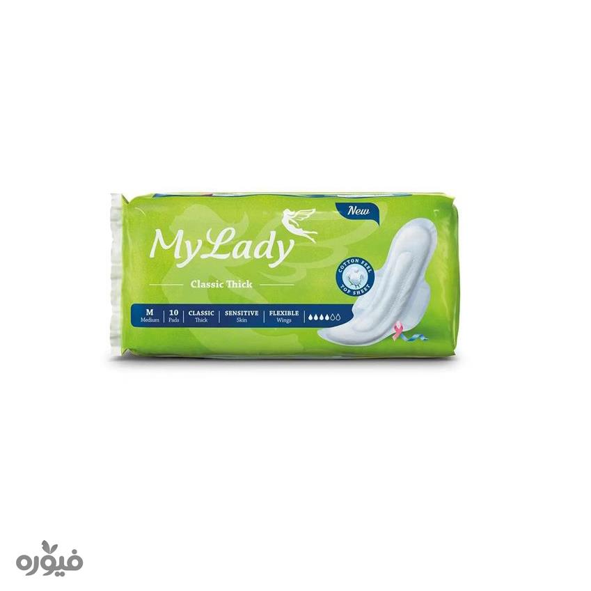 نواربهداشتی سبز مدل کلاسیک متوسط بسته 10 عددی مای لیدی