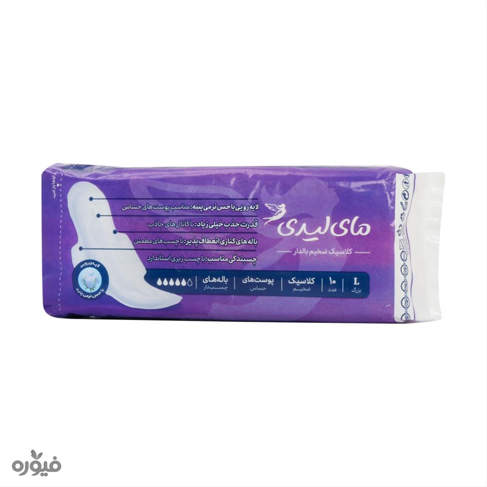 نواربهداشتی بنفش کلاسیک بزرگ بسته 10 عددی مای لیدی