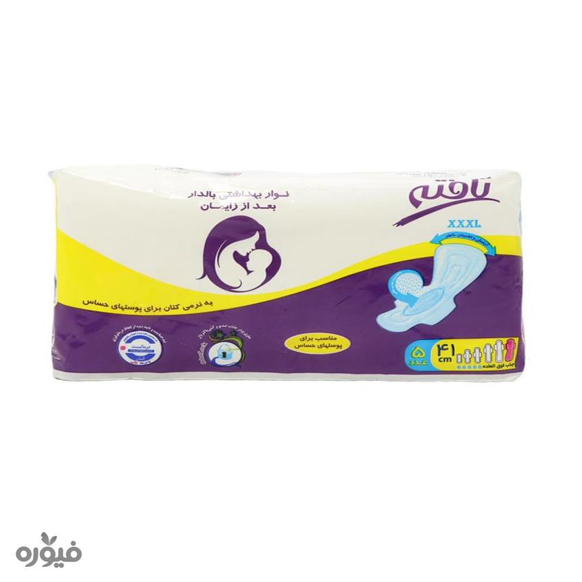 نوار بهداشتی بعد از زایمان تافته (5 عددی)، یکی از محصولات بهداشتی و مراقبتی برای خانمها در دوران قاعدگی است. این محصول دارای سایز بزرگ بوده و دو بال هم در دو طرف خود دارد.