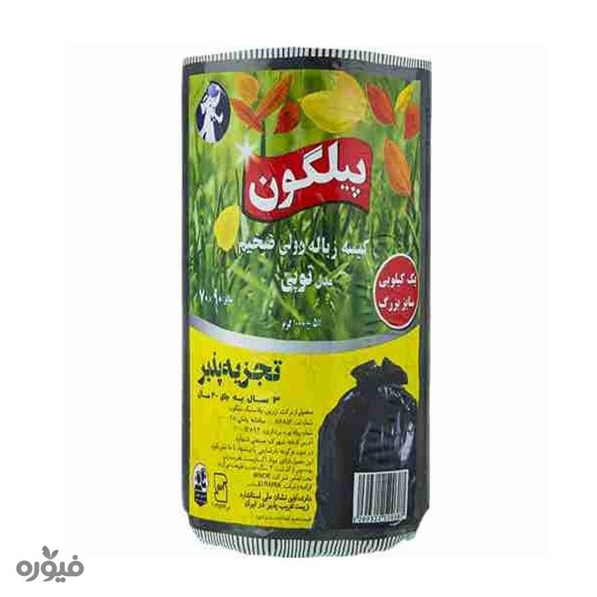 کیسه زباله رولی ضخیم سایز بزرگ توپی 55 عددی پیلگون، تهیه شده از مواد پلی اتیلن نو و بهداشتی, دارای پرفراژ دقیق جهت برش بهتر و راحتر هر کیسه, دارای دوخت ستاره ای در انتهای کیسه جهت جلوگیری از چکه کردن, دارای ضخامت و مقاومت زیاد, دارای مواد اکسازیت که باعث تخریب و تجزیه پذیر بودن محصول در محیط زیست می شود.