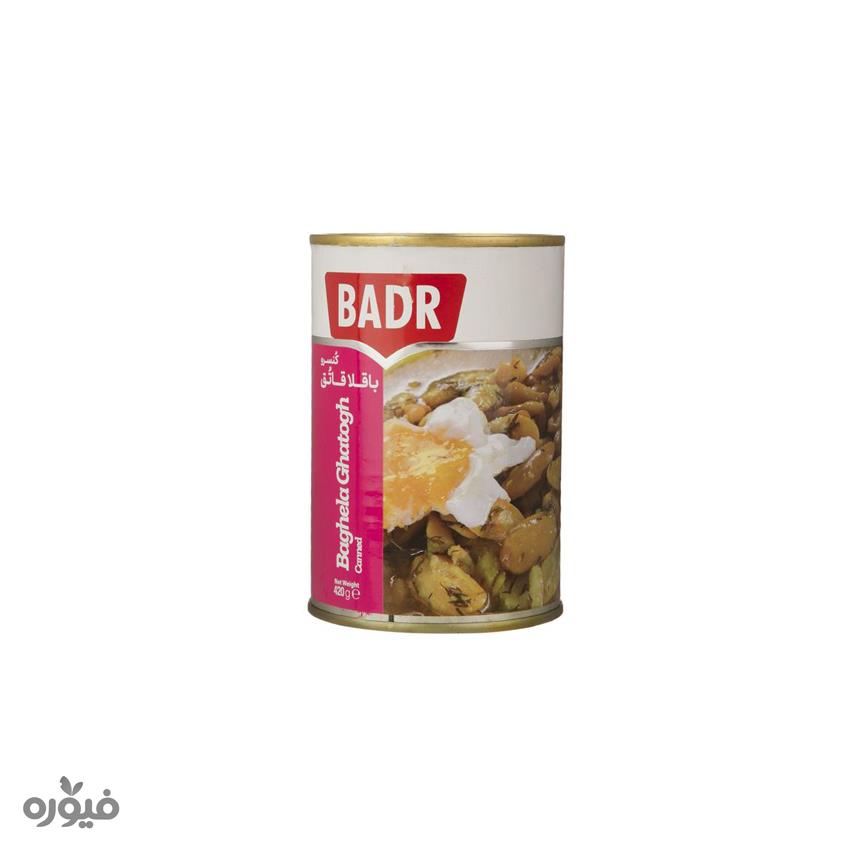 کنسرو باقلا قاتق 420گرمی بدر، این محصول حاصل تلفیق لوبیای رشتی پوست گیری شده، سیر، زردچوبه و شوید تازه بوده که هر یک خواص سلامتی بخش ویژه ای دارند. کنسرو باقلاقاتق به همراه تخم مرغ یک غذای کامل می باشد اما می تواند به عنوان خورشت همراه با پلو نیز مصرف شود.