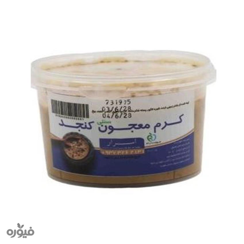 کرم معجون کنجد500گرمی اسرار، نوعی فرآورده تهیه شده از ارده و کنجد بوداده است که جایگاه ویژهای در میانوعدهها و صبحانه پیداکرده است. طعم و خواص کمنظیر این خوراک لذیذ سبب شد تا توجههای زیادی را به خود معطوف شود. کرم کنجد نوعی فرآورده گیاهی است که به علت غلظت و بافتی که دارد از آن با نام کره کنجد هم یاد میکنند. کنجد پوست گرفته شده با انجام عملیات نسبتاً خاصی به خمیری ارده مانند تبدیل میشود که در آخر با اضافهشدن برخی مواد به کرم کنجد میرسیم.