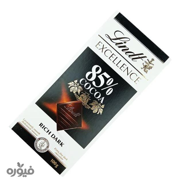 شکلات تلخ حاوی 85% کاکائو، سری اکسلنس excellence مدل ریچ دارک ، تهیه شده از دانه های کاکائوی خاص عطر و طعمی بی مانند از شکلات تلخ با شیرینی ملایم یکی از برترین برندهای جهان در زمینه شکلات بوده و این محصول فرانسه تحت لیسانس شرکت لینت سوئیس می باشد.