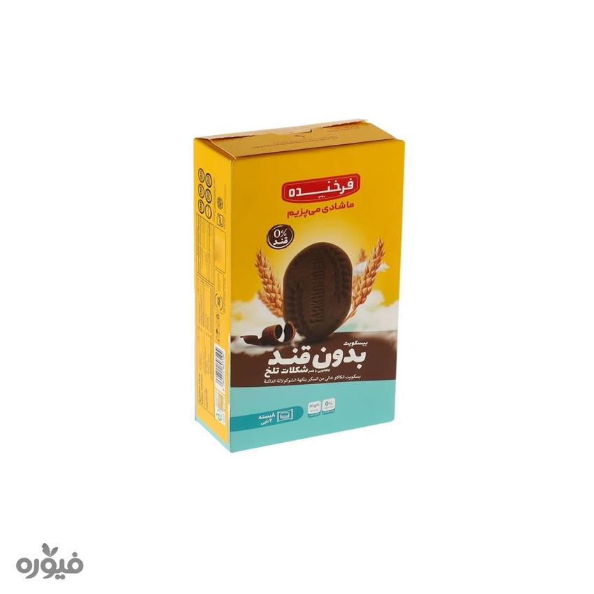 بیسکویت بدون قند با طعم شکلات تلخ 195گرمی فرخنده