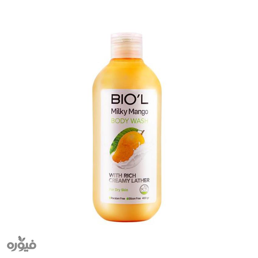 شامپو بدن کرمی بیول حاوی عصاره شیر و انبه مناسب پوست خشک حجم 400 میل، پوست را به مدت طولانی مرطوب می‌کند و از تبخیر سریع رطوبت پوست جلوگیری می‌کند در نتیجه باعث بهبود ساختار پوست و نرمی و لطافت آن می‌شود. PH شامپو بدن بیول بین 5 تا 6 می باشد که بیشترین سازگاری با پوست را دارد. این شامپو بدن کرمی است که علاوه بر استفاده از شویندهای ملایم از مواد نرم کننده کرمی استفاده شده است که سبب می‌شود پوست های حساس در اثر شستشو، خشک و آسیب دیده نشوند و رطوبت پوست تامین شود.